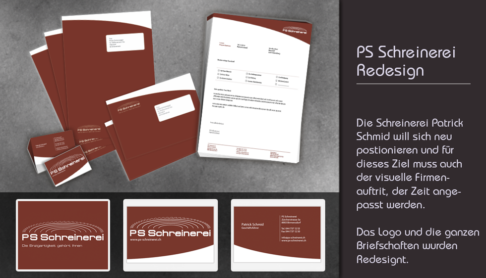 Ein frischer Wind für die PS Schreinerei. Der ganze Firmenauftritt wurde überarbeitet und zusätzlich neues Leben eingehaucht.